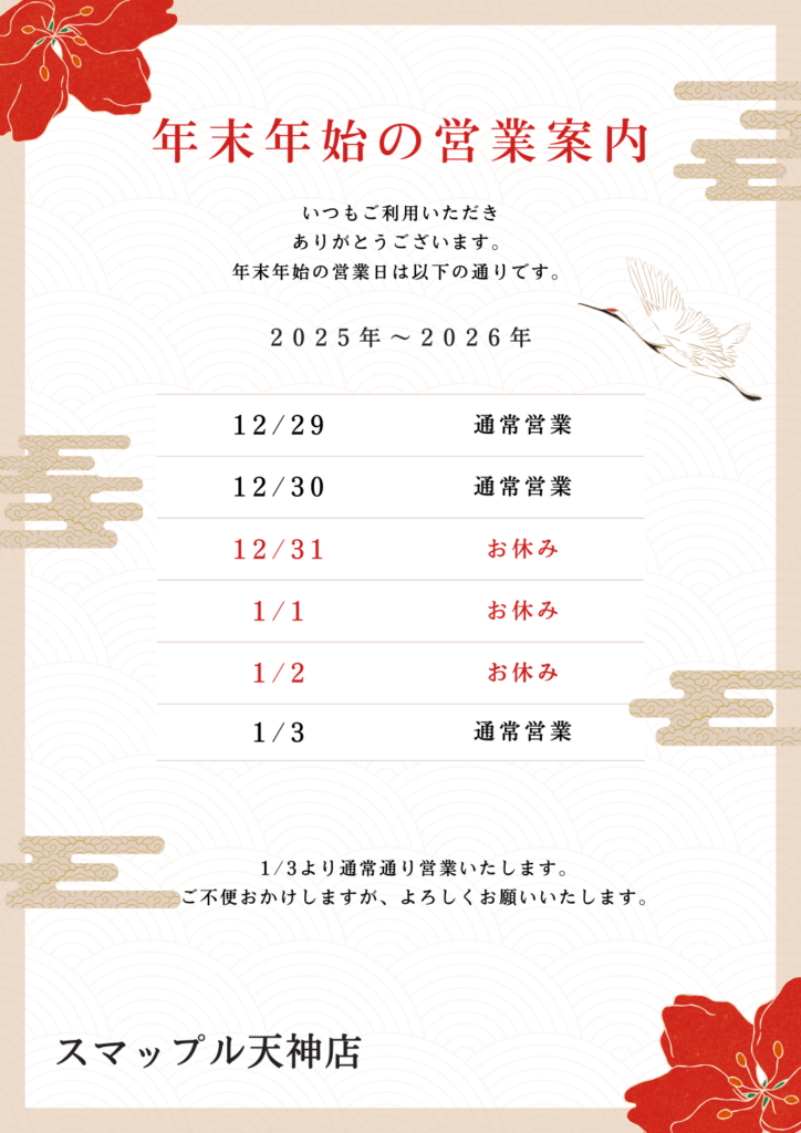 いつもスマップル天神店をご利用いただき、誠にありがとうございます。