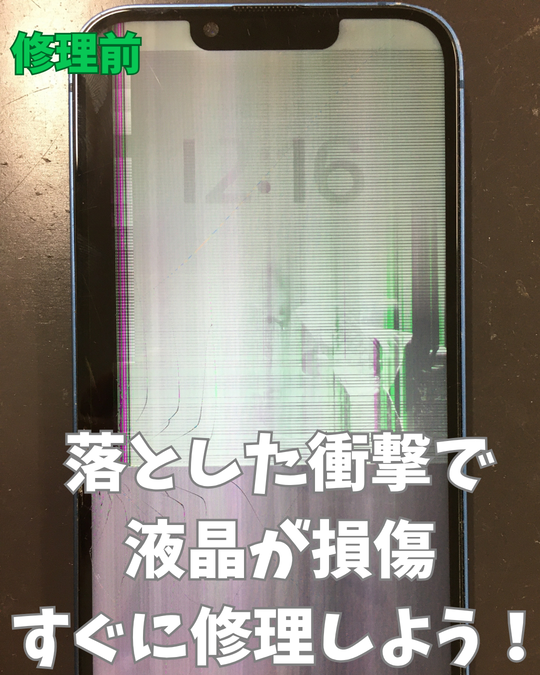 見た通り落とした衝撃で液晶が損傷してしまっています。