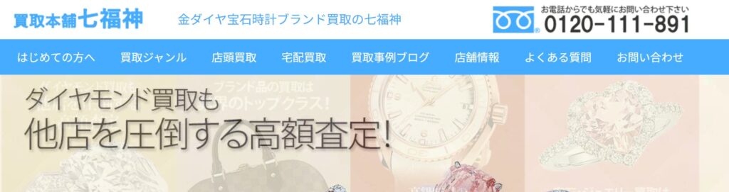 金・プラチナなどの貴金属をはじめ、ダイヤモンドや宝石、高級時計、ブランド品の買取なら、業界最高水準の価格でお買取りする【買取本舗七福神】にお任せください。査定料・手数料は一切不要です。お近くに店舗がない方でも、無料の宅配買取サービスをご利用いただけますので、ぜひお気軽にお申し込みください。