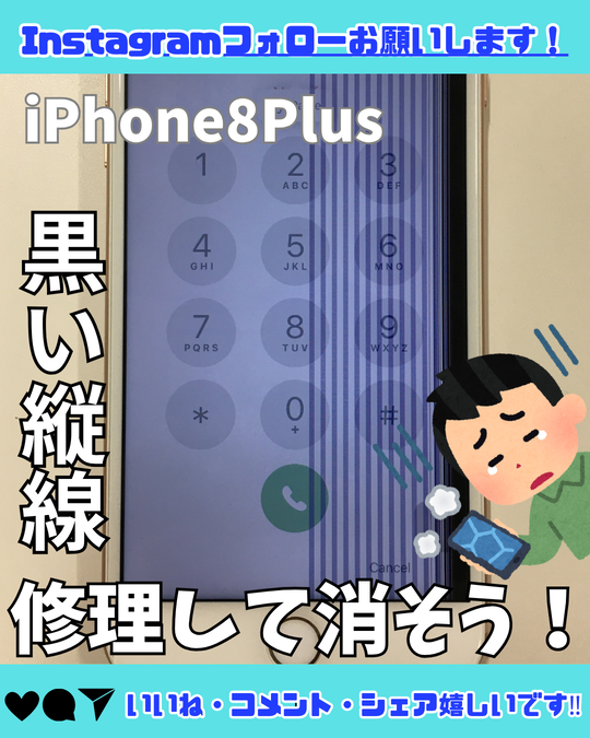 【iPhone8Plus】液晶に黒い線!?画面交換で即日元通り!