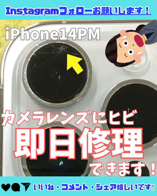 【iPhone14PM】カメラレンズの割れは即日修理しよう!