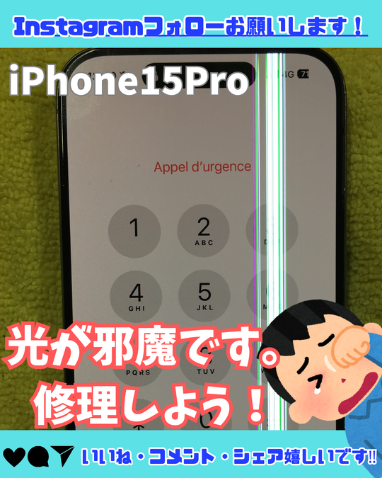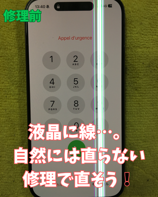 【iPhone15Pro】システムでは消せない液晶の線。液晶修理で消しましょう!