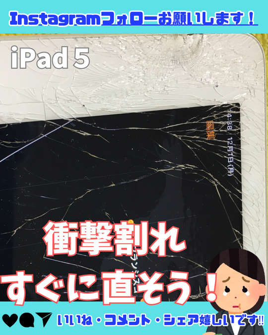 【iPad5】ガラスの割れにはご注意!すぐに直そう!