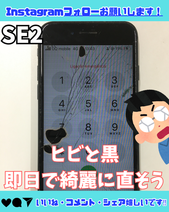 【SE2】ヒビと黒点は即日修理で解決できます!