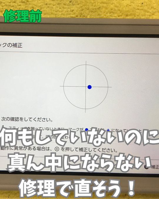 分かりにくいかもしれませんが左のスティックが真ん中にあるはずなのに右に勝手に入力されたり、上下には反応できないといった状態。