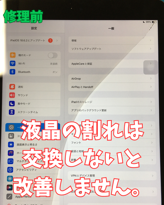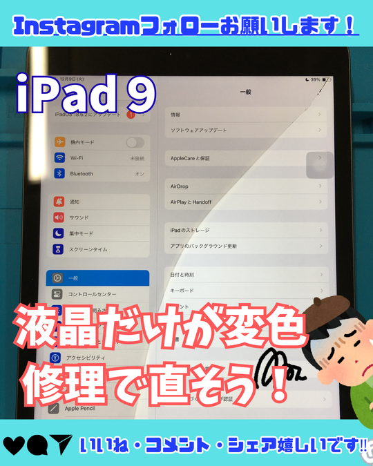 【iPad9】液晶だけが割れて変色!修理で直そう!