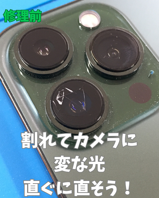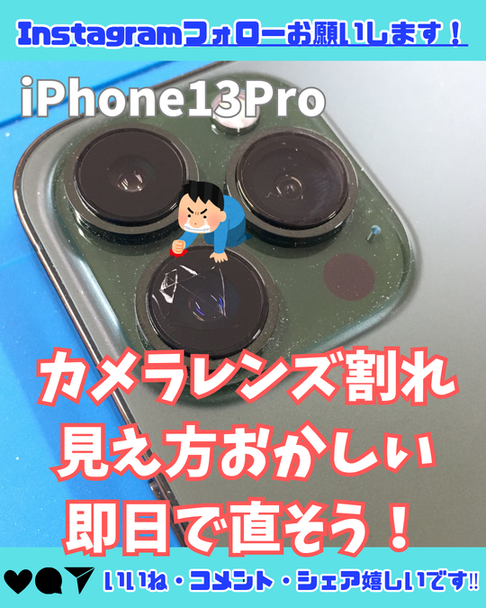 【iPhone13Pro】カメラレンズにヒビ!即日で直そう!