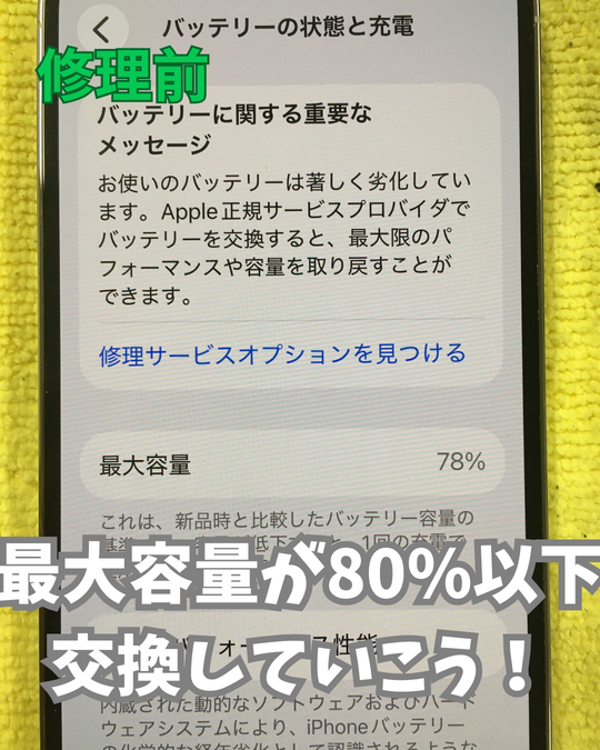公式でも80%を切った端末は交換する事をオススメしているくらいに直ぐに充電が切れてしまうという印象が出てきます。