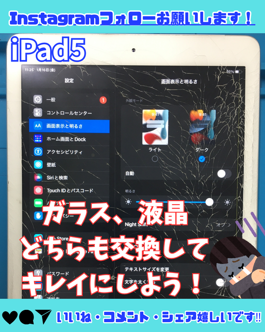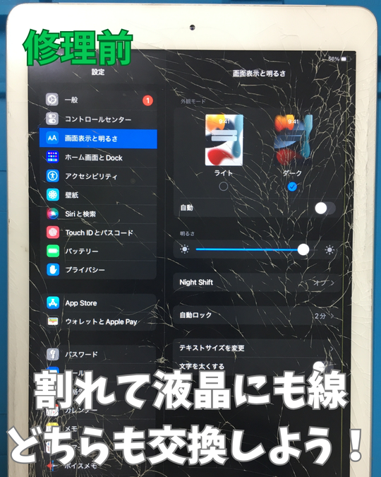 【iPad5】液晶もガラスも壊れてる…修理でピカピカに!