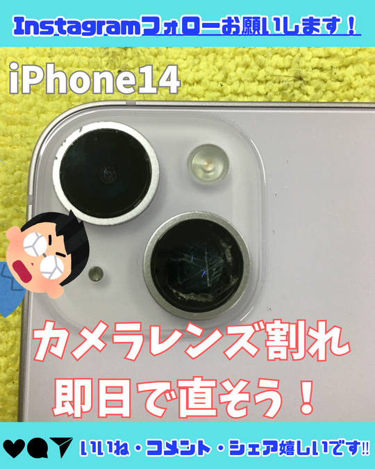 【iPhone14】カメラレンズ割れてる!即日で交換可能‼