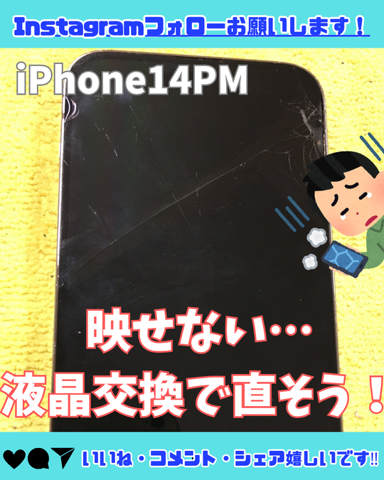 【iPhone14PM】液晶見えない!?交換で直そう!