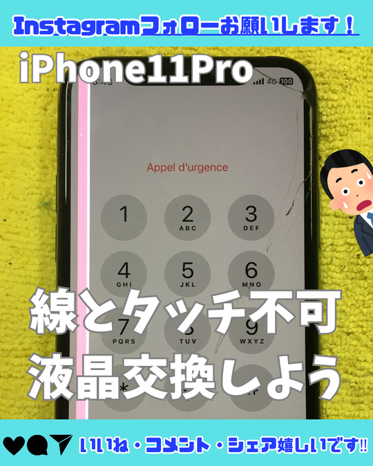 【iPhone11Pro】液晶に線と欠け、タッチ不可は液晶交換しよう!