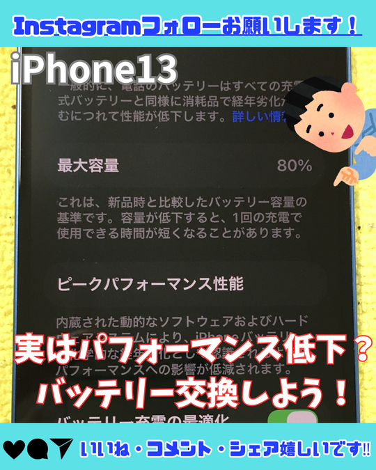 【iPhone13】パフォーマンスにも影響する?バッテリー交換