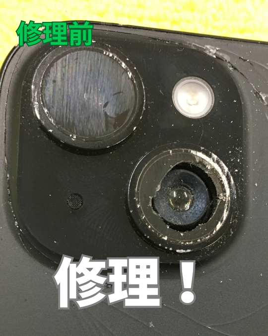 今回、iPhone15のカメラレンズの修理です。