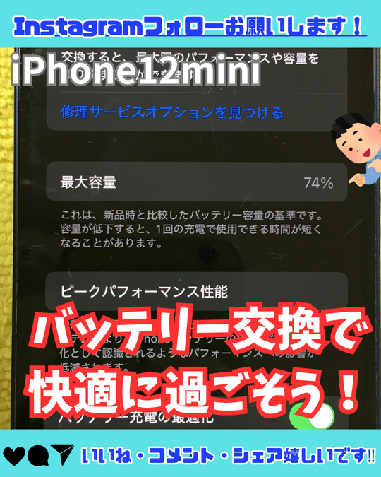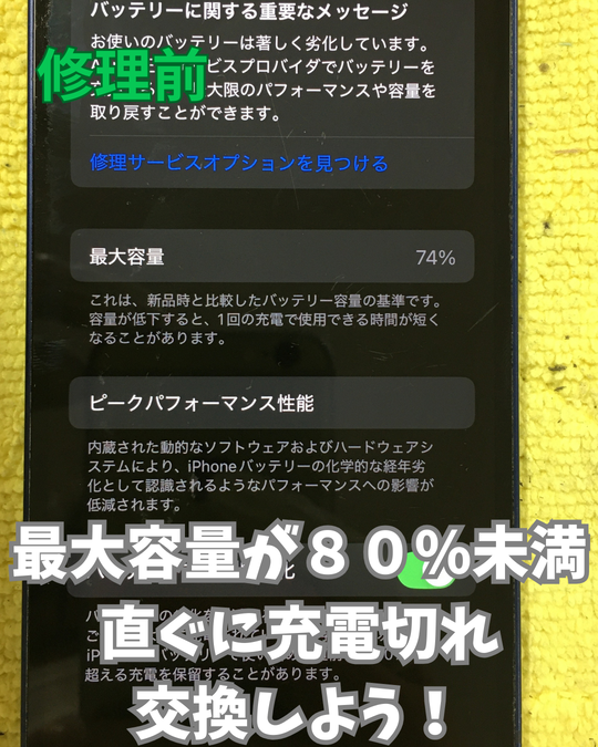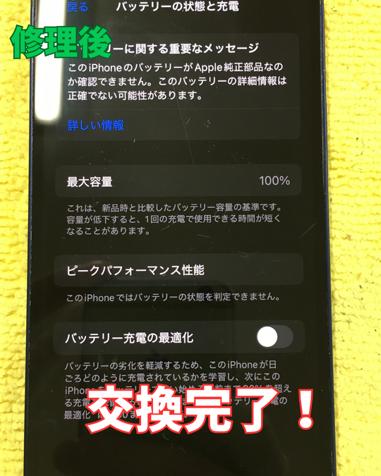 バッテリー交換をすることでバッテリーの最大容量が100%になり長く使用できます!